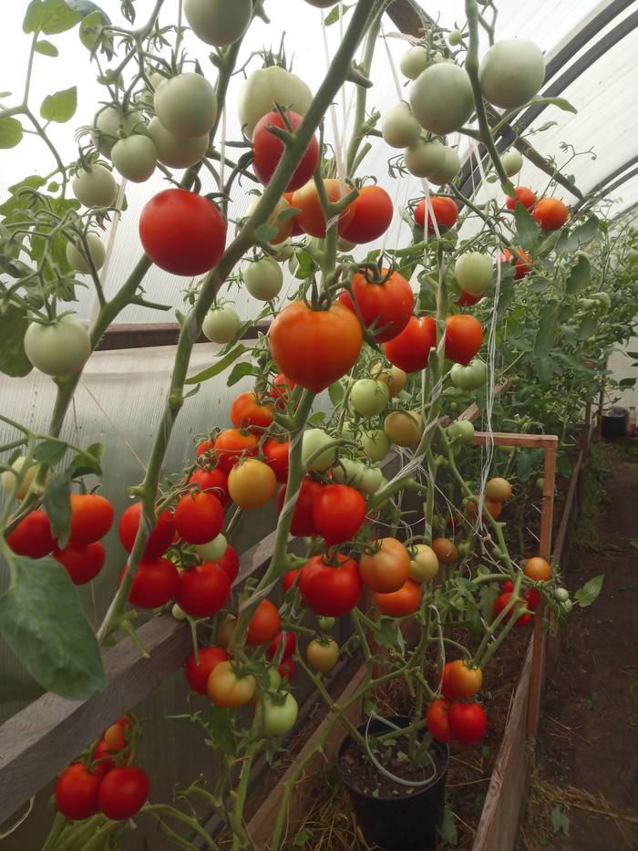 Так моя теплица выглядела в сентябре. Первый раз я была ей довольна. Ни болезней, ни вредителей, урожай полной ложкой. Значит не зря я всю зиму выискивала гибриды для неё.