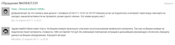 Не пользовался услугами МЕГАФОН очень долгое время (в телефоне две симки), решил сегодня позвонить именно с Мегафона, поэтому полностью отключил в настройках другую симку, что автоматически подключило интернет от мегафона. Я позвонил и спокойно положил телефон на стол, где он и пролежал весь день.