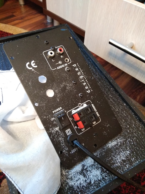 Постоянно пропадал контакт, уже и проводку заменил и все равно. Подключил, вроде работает, подергал, погнул - все ОК. Ставлю назад и опять звук пропадает. Сам он вроде бы цел внутри. Хотел его всего изъять с саба но увидев много гемороя решил пойти по простому - добавить разъемы.