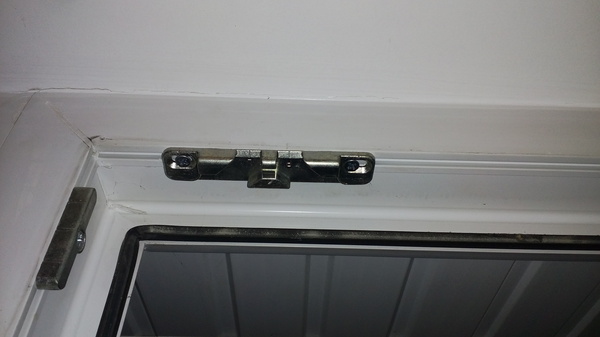 Так же пытался немного сдвинуть в сторону сам замок, но с таким положением саморезов ход очень маленький и ничего не дает, а делать отверстие рядом с уже существующим отверстием... сами знаете, что получится. Можно ли отрегулировать тот верхний фиксатор? Как я увидел он не по центру, немного уходит в сторону, может его сбили?