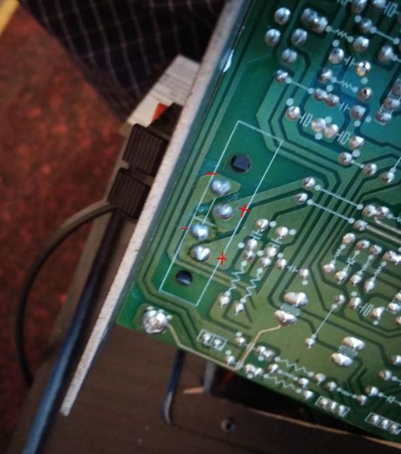Прозвонив контакты, нашел и пометил где + и - на плате