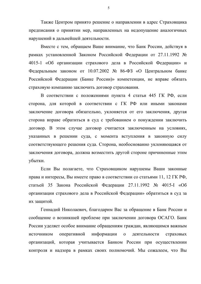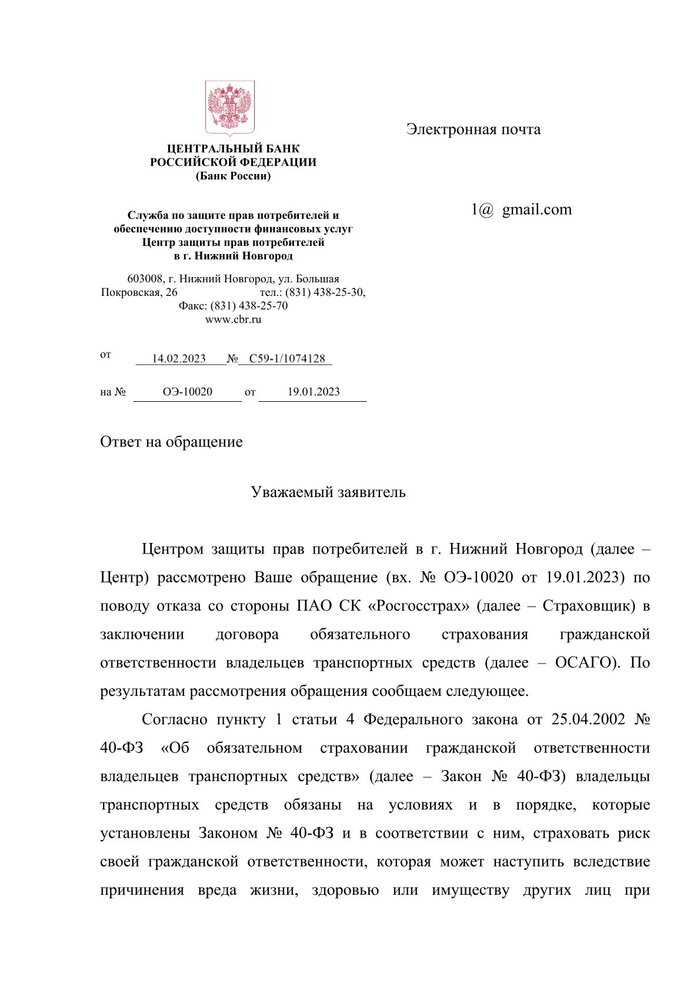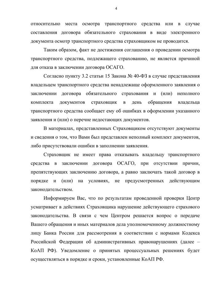 P.S. В письме номера практически всех нормативных актов и статей по вопросу приобретения ОСАГО. Может кому пригодится. Ну и сам ответ - позиция ЦБ, можно ссылаться, номер ответа оставляю.