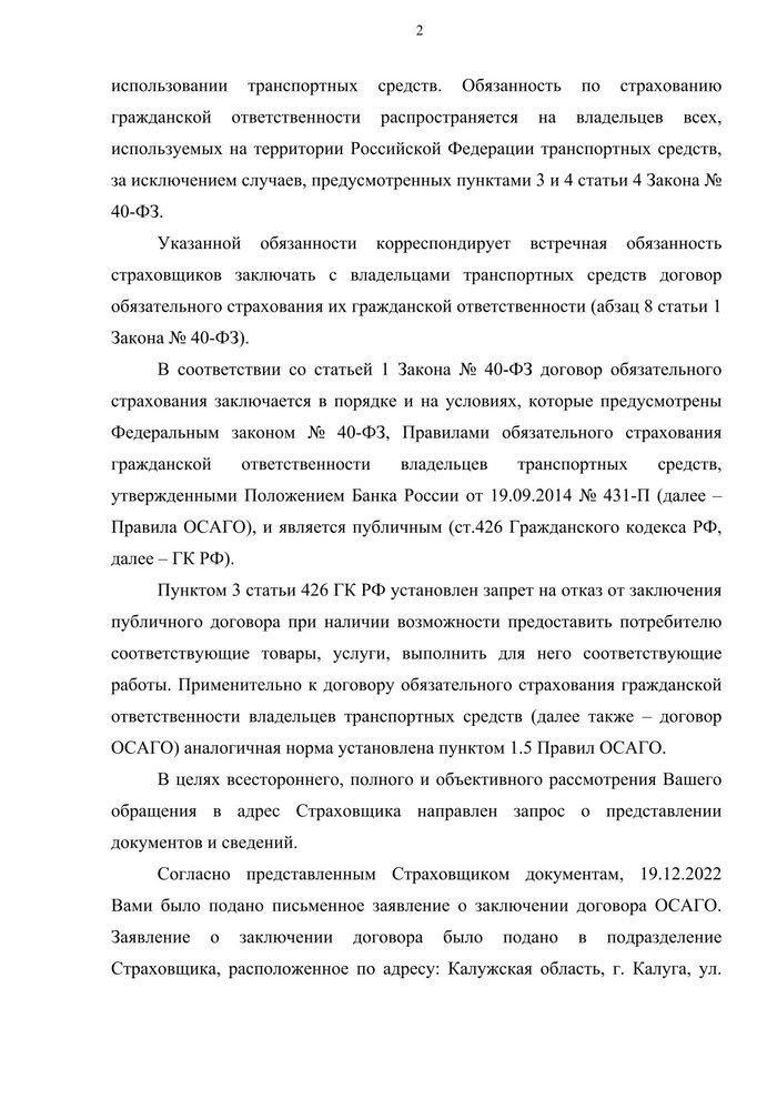 Между тем Федеральный закон от 25.04.2002 N 40-ФЗ (ред. от 28.12.2022) "Об обязательном страховании гражданской ответственности владельцев транспортных средств" в пункте 3.2 статьи 15 гласит: