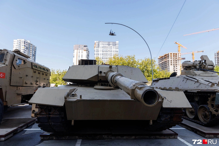 В сторонке стоят наши Т-72(что то там ещё)раза в 1,5скромнее в размерах, красивые в 100 раз, на них дети лазят и это так гармонично.
