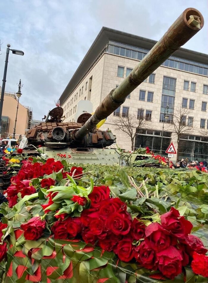 Сразу вспомнился наш танк в Берлине, с цветами.