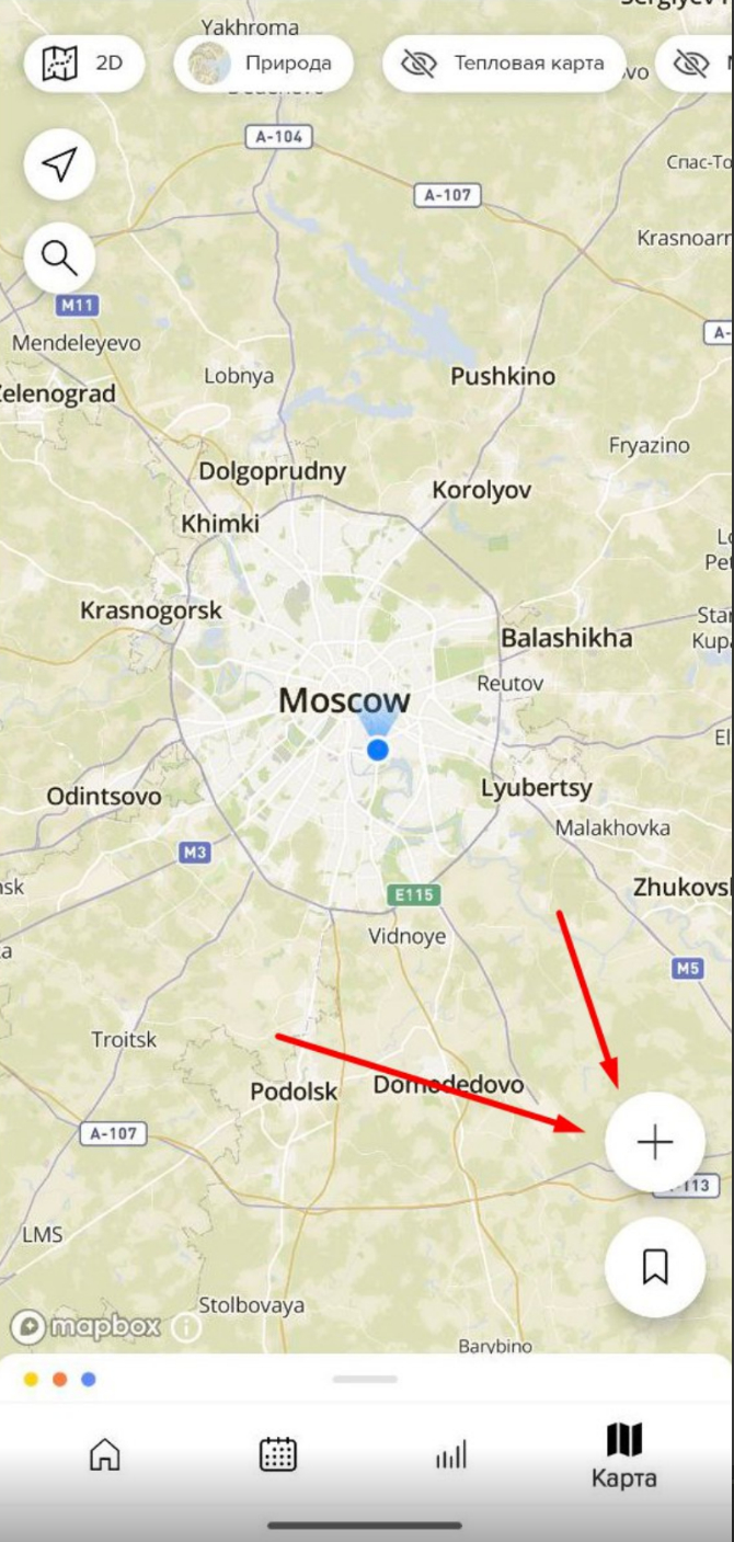 Нажимаем внизу справа значок карты, находим пальцами точку, которая нам нужна.