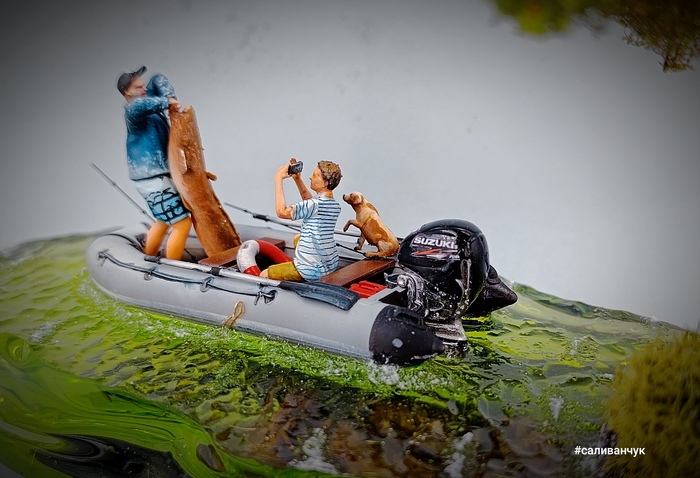 Обрадовались как малыши в детском саду . Все разглядывали работу , отмечая мелочи с которыми пришлось повозиться . Друг их семьи , собака Филимон, рыбачит с ними . поэтому в лодке он тоже есть.