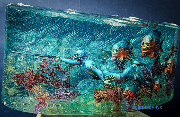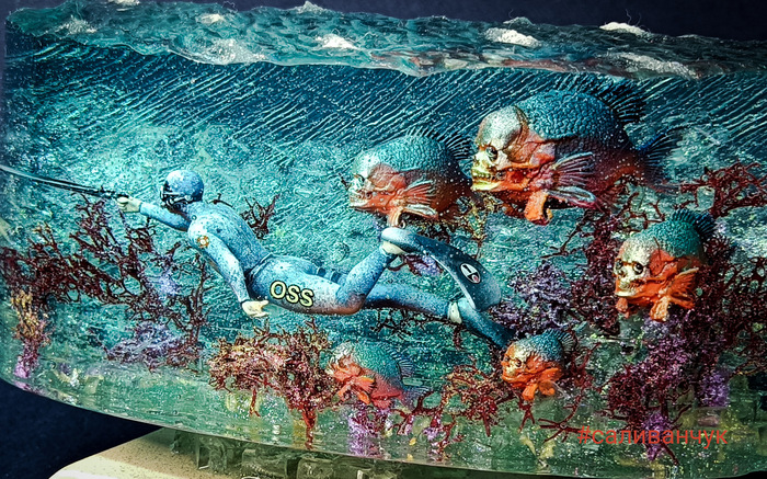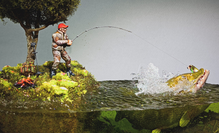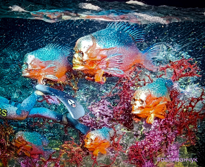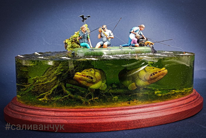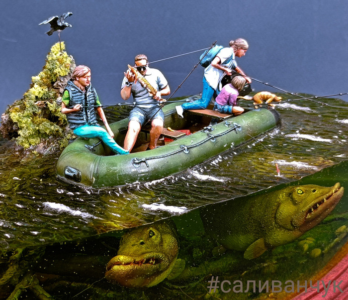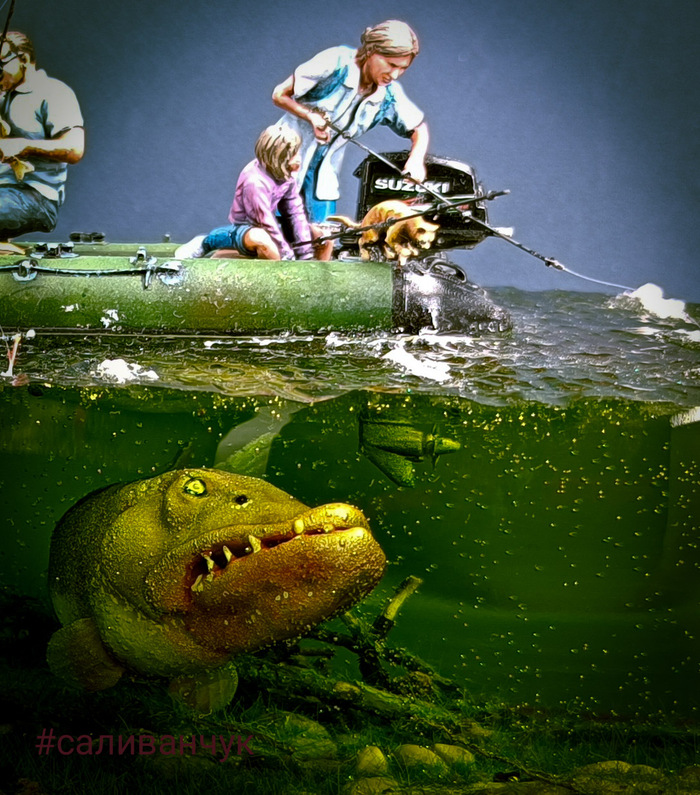 Я как-то делал работу в которой рассказал о хипстерах .... Работа вызвала бурное обсуждение среди моих друзей и получила продолжение в этой . Оказывается есть очень брутальный рыбаки , взрослые и большие . Половину жизни проводят в лодке на рыбалке. А вот недоверие к подводному миру у них есть . Что там в мутной воде , под корягой сидит и смотрит, как бы кого утащить в свою яму . Из разговора с таким рыбаком нарисовалась такая картина . В его детских снах он боролся с монстрами один. А вот теперь нет нет да приходят к нему истории в которые попадает вся его семья . Жена дети . Сны обычно заканчиваются хорошо . Парень то весёлый и все у него на позитиве. Вот забирай, сеанс от психотерапевта .