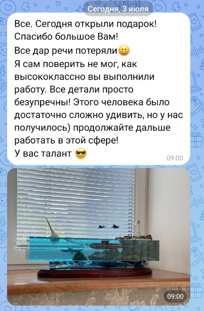 У этой работы нет особенной истории . Задача была сделать подарок который удивить человека.