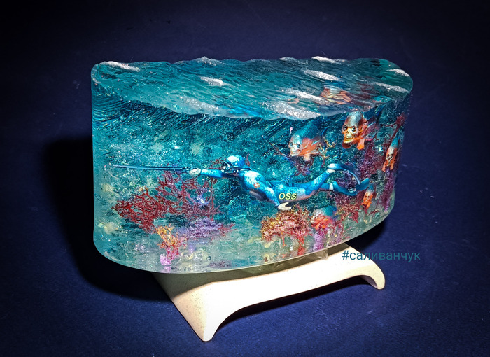 Работа сделана из эпоксидной смолы и пары стаканчиков вискаря .