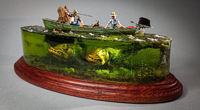 В работе использована эпоксидная смола, 3d печать. Немного страха и воспоминаний о друзьях .
