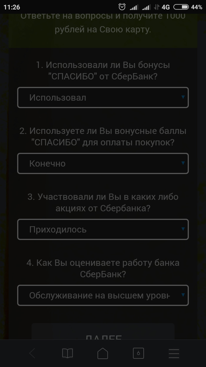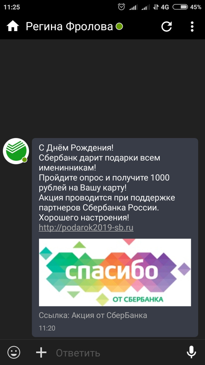 Сегодня сотрудник банка(как могло мне показаться) поздравил с днём рождения и дал ссылку на халявные 1000 рублей ,которые я могу получить после небольшого опроса.