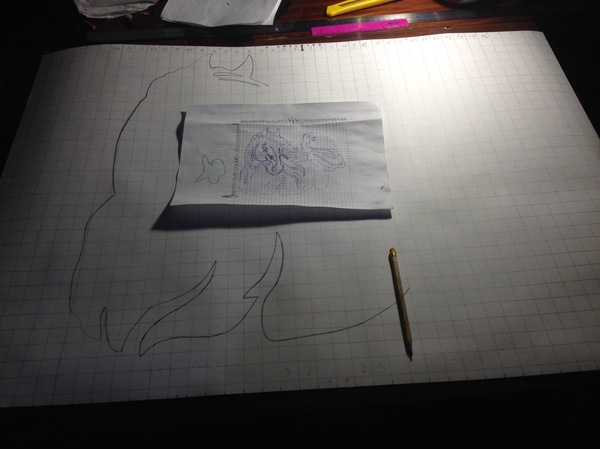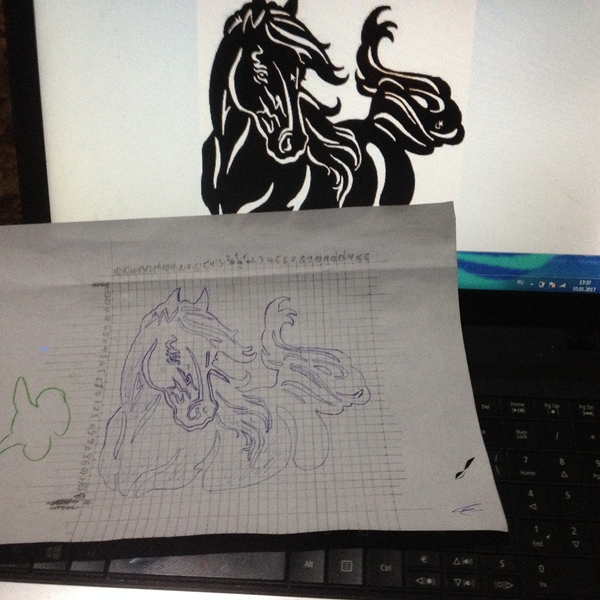 Это один из трафаретов для стен, которыми я хочу оформить печь в своей хижине. Берем А4 или же просто лист в клетку (это будет чуть проще), и на манер копирки накладываем лист на дисплей и тупо обводим контур. Соответственно, если картинка на бумаге - окно в помощь и те же действия. Получится вот так: