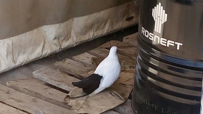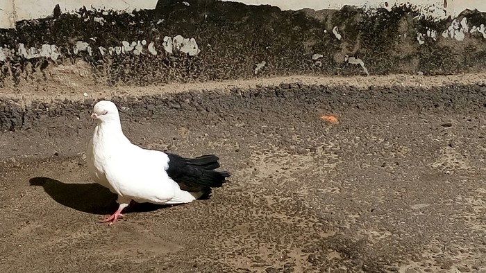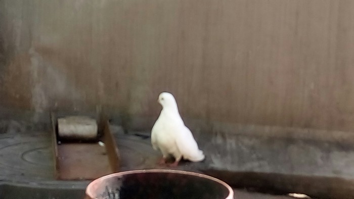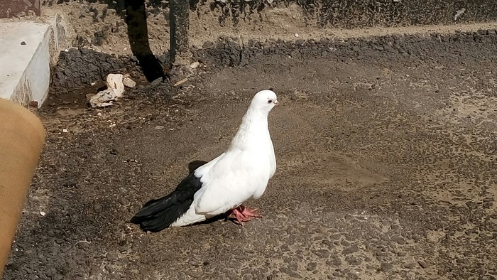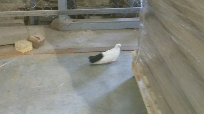 В общем дело было сегодня: прихожу на работу, первым делом кофе и в курилку, выхожу а там Он, собственно этот пернатый всю смену был в радиусе 10м изредка поднимаясь в высь, дабы проыетриться, к обеду был накормлен батоном и сделана поилка ( бутылку обрезали). К людям подходил до 1 метра ( ну 1 раз с перепугу сел на руку коллеге секунды на3, после отлетел метр и продолжил свои наблюдения за человеками))), очень любознательный и какой-то необычный на мой взгляд. И так, есть кто разбирается в голубях? Интересно узнать: что за порода может кто знает? P.S. Весь белый, хвост черный ( "раздвоенный" но когда взлетает с хвостом всё норм.)