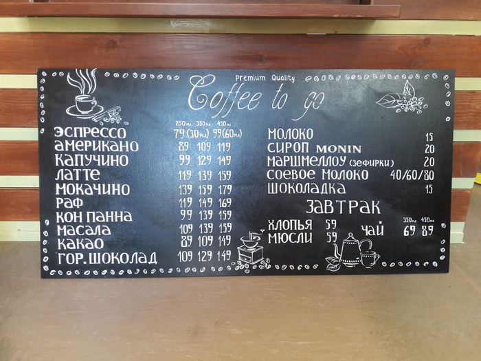 Во времена, когда я могла брать подработку не только на дому, мне пришел заказ на разрисовку акрилом меловой доски под меню.