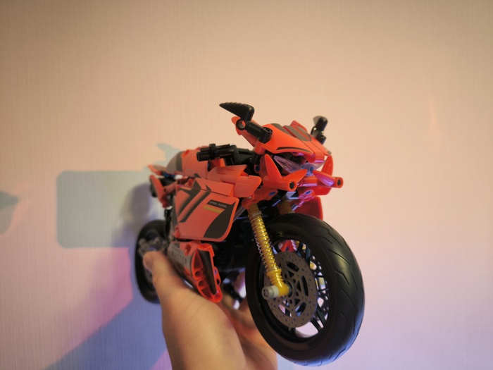 Неплохой вариант для начинающих интересоваться конструктором типа "Техник", явно видно что производитель хотел скопировать набор LEGO Technic 42202, детализация слабая на мой взгляд, но зато конструкция довольно монолитна, также наглядно видно основные узлы мотоцикла и самое главное они подвижны, что позволит вам практически показать ребенку устройство техники по ходу сборки и в дальнейшей его игровой эксплуатации.