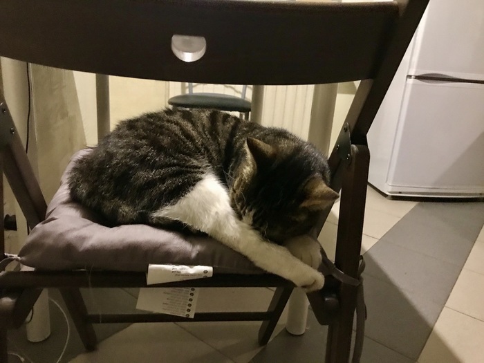 Прогонять тоже как-то не очень. Из предложенных продуктов(кефир, сыр, масло) она немного полизала масло. Сейчас уселась на рюкзак и сумку, при малейшем приближении начинает мурчать: