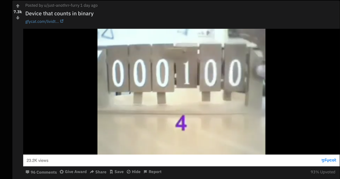 Заголовок "Штука для счета в двоичном формате". Куча комментариев и никто не спрашивает про устройство этой штуки.
