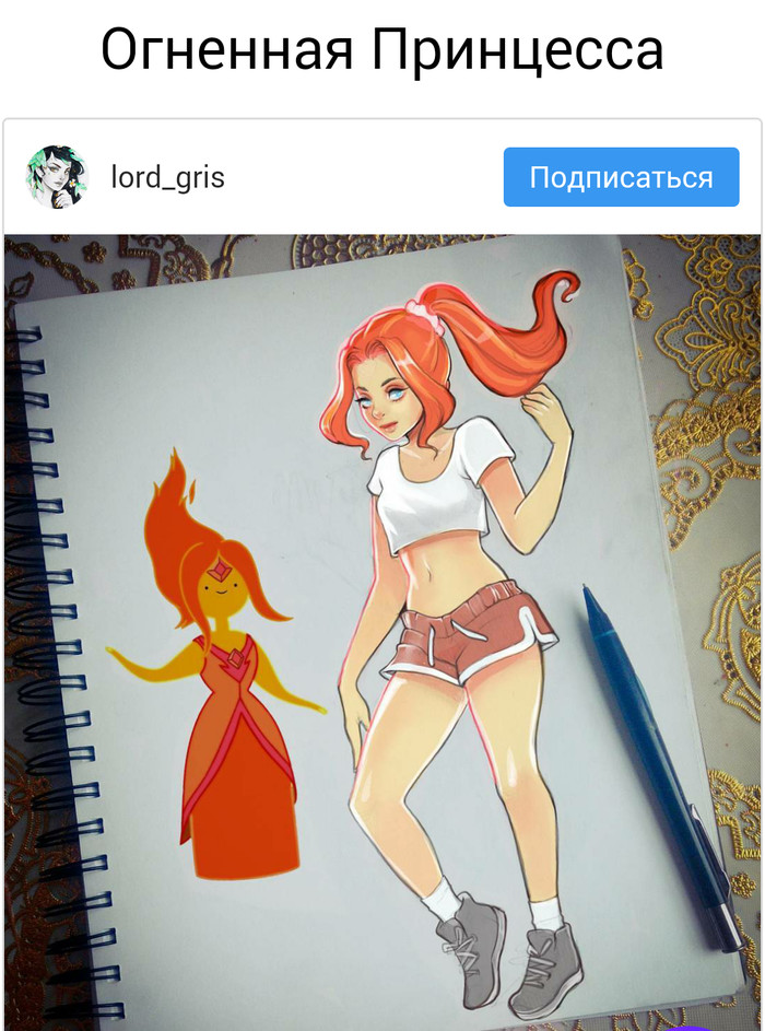 Художница с ником lord_gris регулярно выкладывает новые рисунки в свойInstagram. В основном ее работы — это иллюстрации в стиле фэнтези: красивые и насквозь пропитанные магией. А не так давно она посвятила серию рисунков главным героиням мультсериала «Время приключений» и попробовала превратить мультяшных девочек в настоящих.