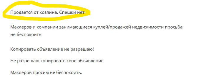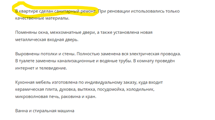 Ну и в дополнение, есть ещё объявление с совершенно неадекватной ценой (200 тысяч), где не вооруженным глазом видно, что после ремонта на фото ни то, что никто не жил, а даже муха не еблась, но позиционируется оно как объявление от хозяина, а не перекупа.