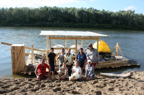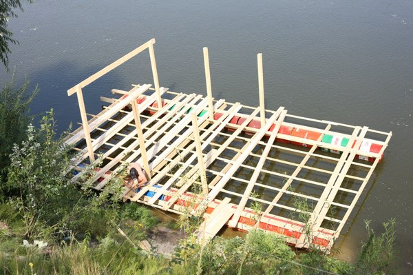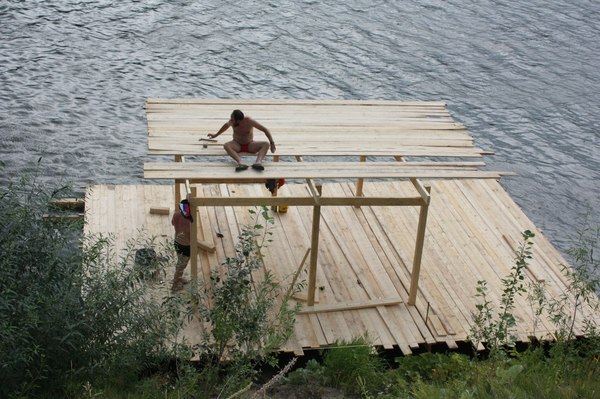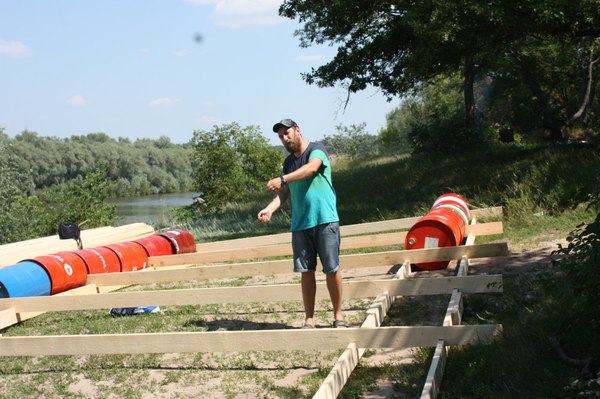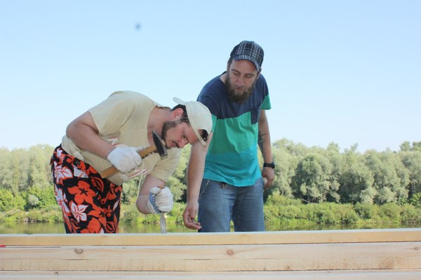 Когда каркас был собран, с помощью местных жителей, мы его спустили на воду. (Спасибо всем, кто помогал)