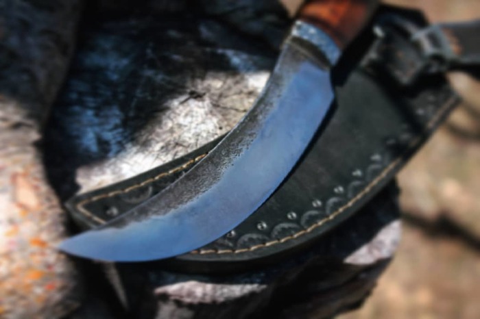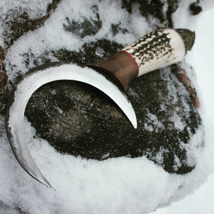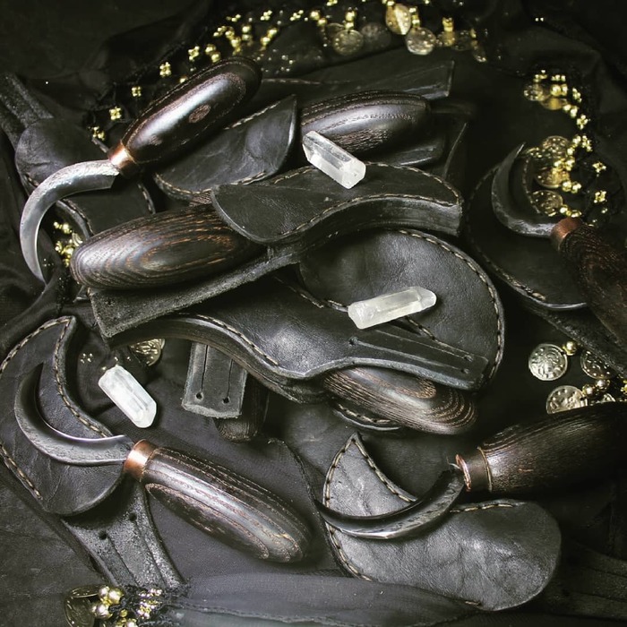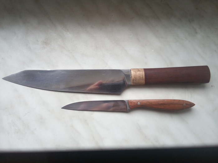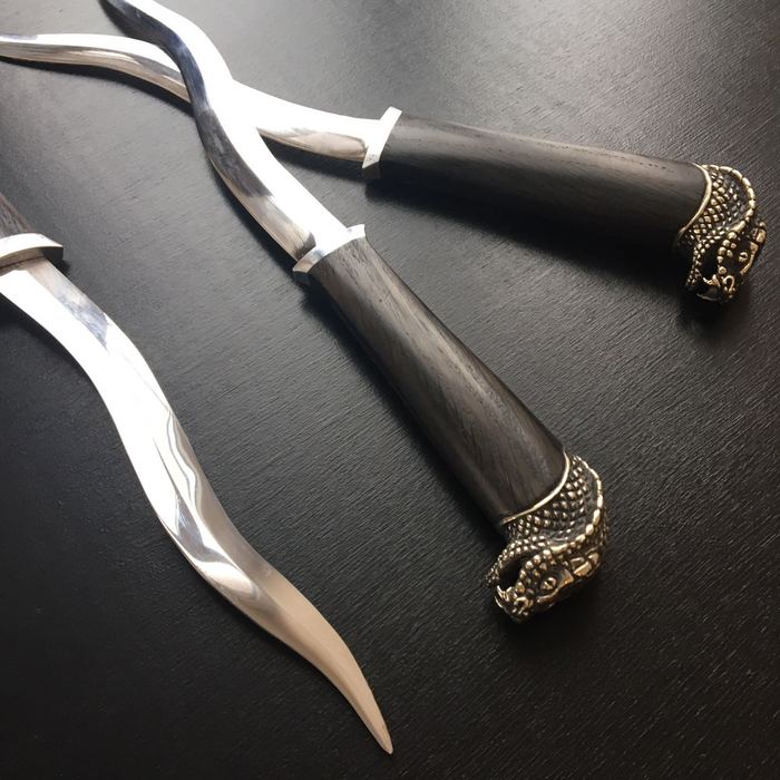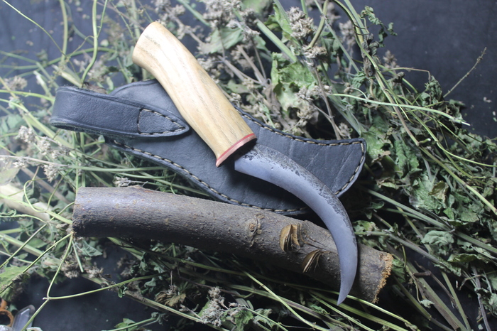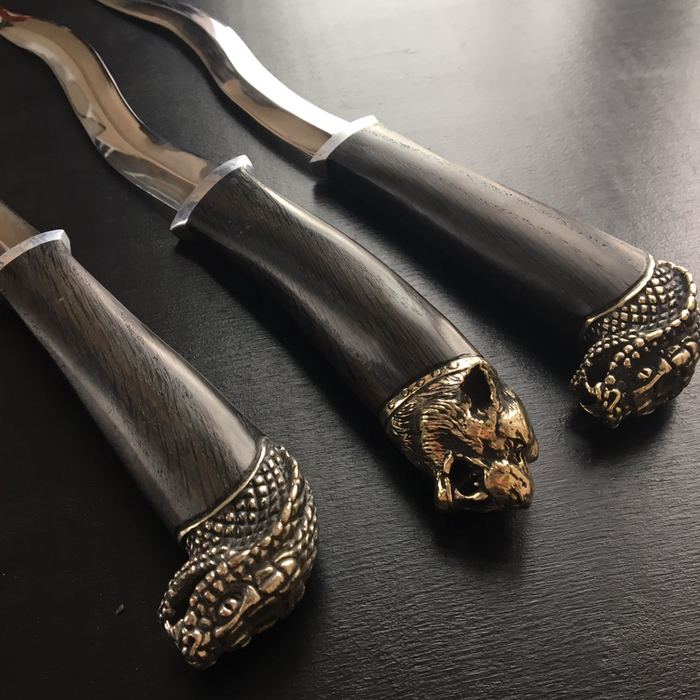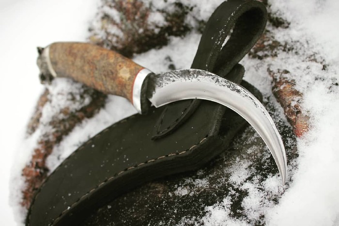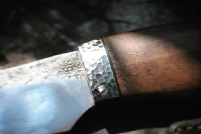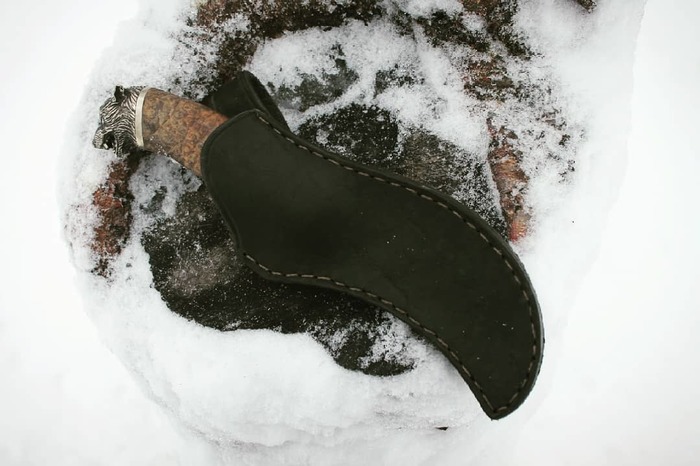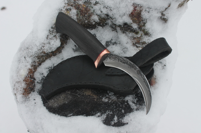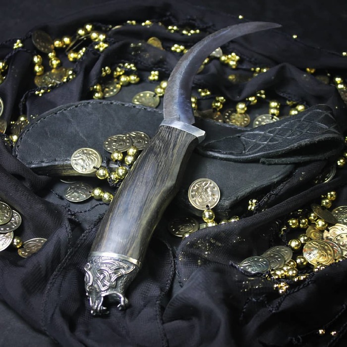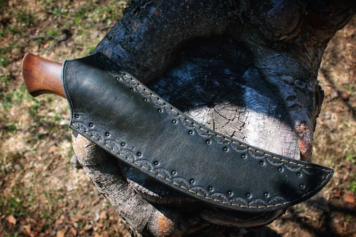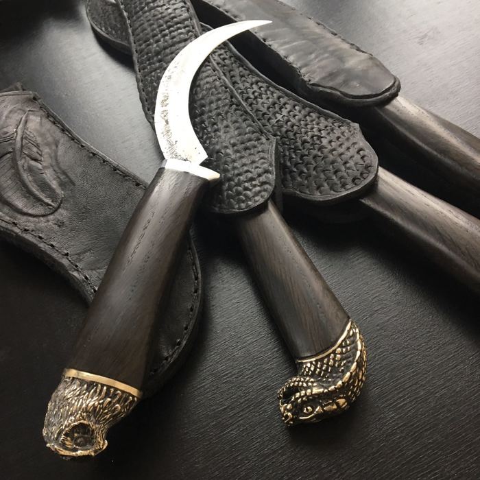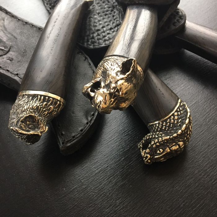 Рукоять из капа ольхи и мореного дуба. Проставка из бронзы.