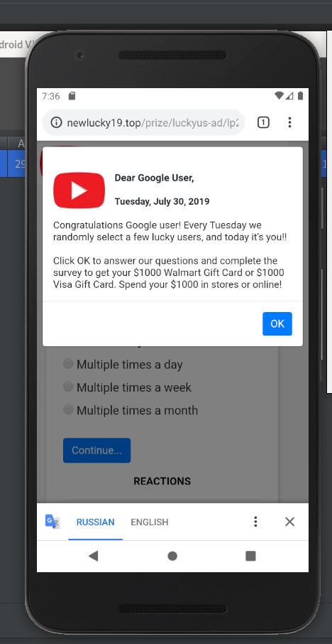 Для чистоты эксперимента, накатил эмулятор андройда, результат тот же: