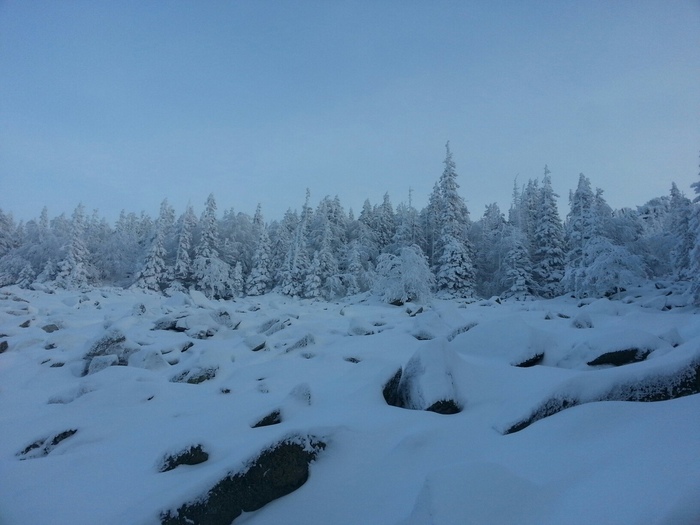 Не задерживаясь в этом месте, мы отправились к тропе, но тут нас ждали новые огорчения: зайти мы решили не с парадного, а с заднего, так сказать, входа, но тропа там была сокрыта в глухом лесу и за три дня пути и ночёвок на морозе в -15 мы так и не смогли обнаружить её. В результате было принято решение добраться до ближайшего города - Златоуст, переночевать в нём и отправиться на маршрут уже с главного входа.