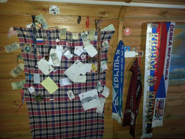 Что бы там ни было, утром мы вместе отправились туда и на этот раз погода была ясной. )) На "Метиостанции" заведует суровый дядька-смотритель (сибиряк и охотник), который напоил нас чаем с баранками... Изба не велика, но с десяток человек разместить вполне реально. На стене висит стенд, а на нём записки туристов с пожеланиями и обращениями, оставленные нашими предшественниками - как мило... )) Моя спутниц а и я тоже написали что-то и, немного посидев, отправились в обратный путь...