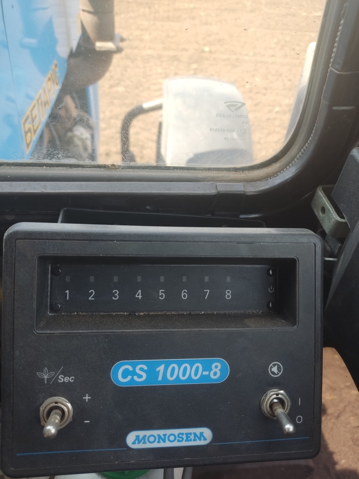 Навигатор считает обработанные гектары. Связь по стационарным рациям. Также в кабине установлен "компьютер", связанный с сеялкой. Если, к примеру, какой-то из сошников забился и семечка перестала "падать", датчик звуковым сигналом оповестит об этом, а цветовым индикатором укажет, с каким именно проблема. Останавливаемся, выходим, чистим, едем дальше. Удобная штука, в общем))