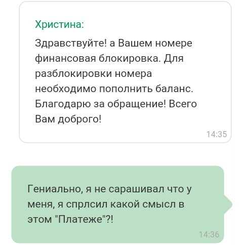На балансе -6 рублей, номер заблокирован, и в интернет я выйти не могу.