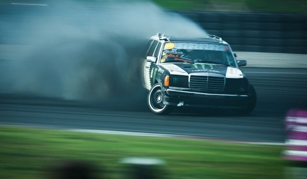 Эффектное прохождение трасс и агрессивная манера пилота «давить газ в пол» привлекли огромное количество фанатов дрифта к этому старенькому Бенцу.