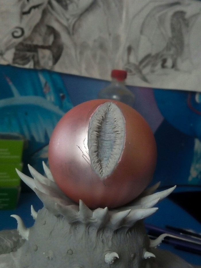 - Глаза: как зияющие пасти с коричнево-охристым оттенком — они должны «светиться» даже в темноте!