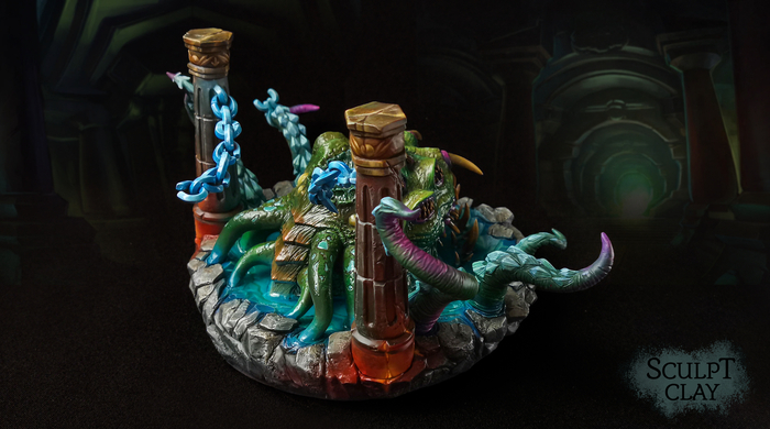 Йогг-Сарон — это не просто монстр, это целая вселенная безумия, щупалец и острых зубов в его глазницах. Моей главной задачей было передать его жутковатую эстетику: сочетание органики и механизмов титанов, скрученных щупалец и мистических элементов.