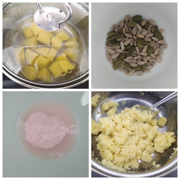 Когда на поверхности молока появятся характерные пузырьки, добавить соль, масло и муку.