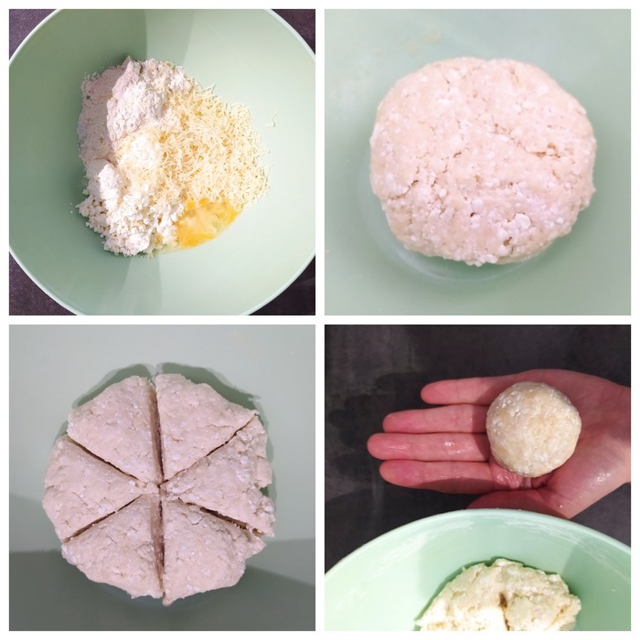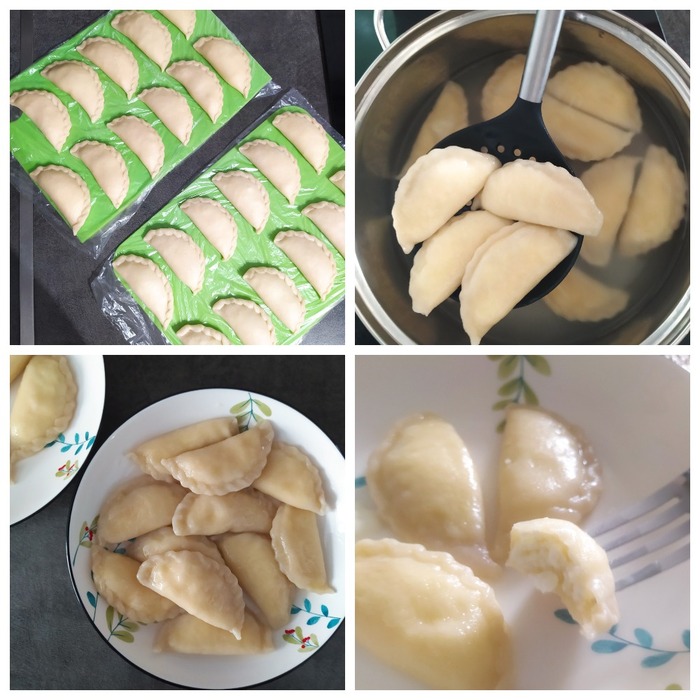 На фото я готовлю из половины продуктов, поэтому делю тесто и начинку всего на 6 частей и получаю 6 сочней.