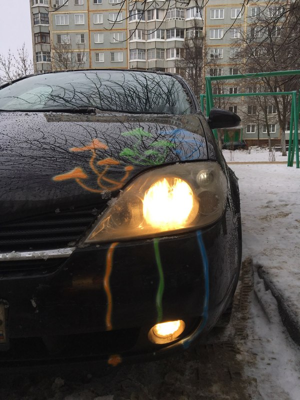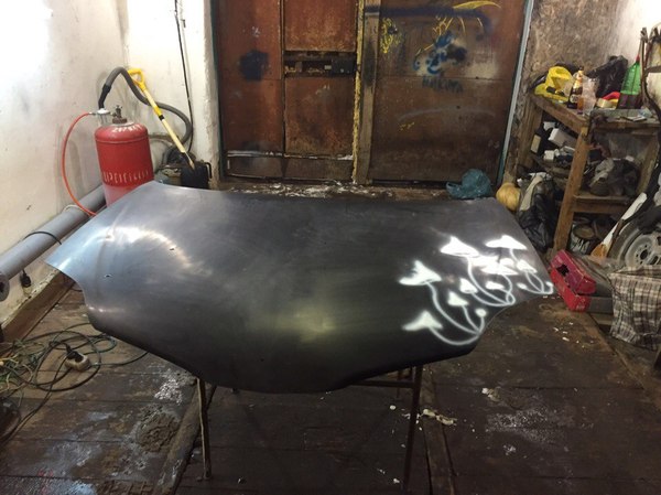 Прошёл год, и к счастью(сожалению) я сломал об бордюр бампер. И нашлось место творчеству,и тому чего не хватало))капоту с бампером. Капот и бампер зашкурили,геморой ещё тот, особенно бампер. Но надо:/ Опять набросок,снова белый фон.