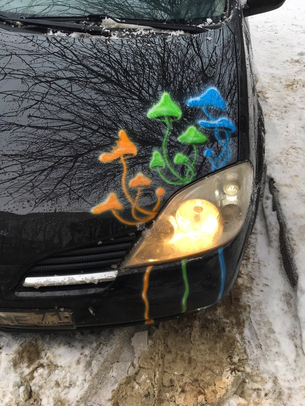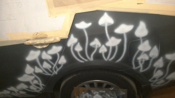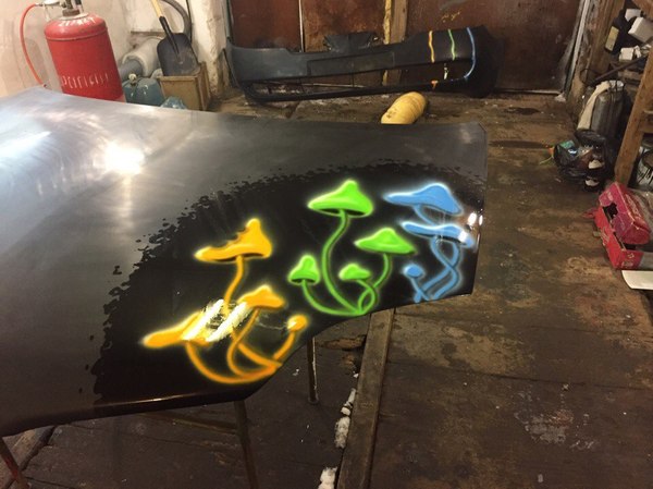 Всех с наступающим! Длинопост о том, как мы решили исполнить мою мечту и заодно набить руку в деле аэрографии моему другу,предоставив мой аппарат в виде экспериментального образца)Ничего не придумав лучше кислотных грибов(да и всегда в голове держал эту идею),решили начать именно с них.)1ым был набросок