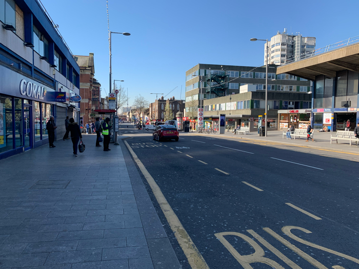 Это район Barking. Станция. Тут 2 ветки метро, оверграунд и поезда. Обычно толпы,щас...