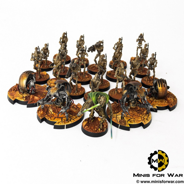 Ещё одна игра сеттинг которой не нуждается в представлении. Единственная из списка в которую я не играл но очень много про неё слышал. Из особенностей игры можно выделить особый порядок активации отрядов, каждый из которых имеет свой тип и даёт фишку в общую для игрока стопку. Игроки по очереди тянут фишки каждый из своей стопки и таким образом в случайном порядке активируют свои отряды. Так же есть разные карты и способности героев которые призваны немного упорядочить процесс активации и подвигать в какой-то важный момент именно тех кто вам нужен. Передвижение в игре осуществляется с помощью специальных двусоставных линеек, тут рулетка вам не пригодиться. Результаты сражений разрешаются методом бросков особых восьмигранных кубов которые имеют разный цвет и разное количество граней успеха. Имеется возможность кастомизировать свои отряды добавляя им разное снаряжение и способности, что вносит тактическое разнообразие. Первый стартер с повстанцами и империей переведён на русский, но уже имеются стартеры с клонами и торговой федерацией, правда увы на английском, модельный ряд активно пополняется так что можно сказать что игра жива и активна. Миниатюры я в руках не держал, судя по отзывам они выполнены из смолы и оружие и некоторые детали могут быть подвержены деформации, что очень не очень, но возможно в более поздних изданиях это исправлено.