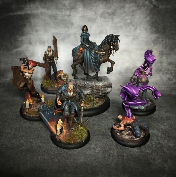 Ещё один "спортивный" скирмиш варгейм, на этот раз от компании Wyrd Games. События игры происходят в наполненном магией мире по ту сторону портала некогда открывшегося на альтернативной Земле. Малифо - это город этого потустороннего мира, в окрестностях которого (и в нём самом) происходит весь основной движ сюжета. Тут смешалось всё: джины, демоны, ночные кошмары, стимпанк технологии, гремлины, гигантские свиньи и т.д и т.п. Основная фишка игры - отсутствие кубов, разрешение боёв происходит методом вытягивания карт из немного видоизменённой покерной колоды. Так же каждый игрок имеет руку с картами и в некоторых случаях может заменить плохую карту в важном событии на более удачную с руки, что несколько балансирует рандом. Сбор банды происходит за соулстоуны - камни душ, местные источники магии. Если банда уже набрана и остались лишние соулстоуны то не стоит расстраиваться, Мастера - местные предводители банд используют их для создания колдунств или сильных спецприёмов. Правила игры достаточно просты, но хитрость кроется в бойцах, все они имеют разные возможности, приёмы и спецправила, образующие синергии, изучение которых может занять значительное время. Миниатюры в игре выполнены из обычного пластика, такого же как и в вархаммере, но как правило не отличаются интересными скульптами, если это люди то это +/- обычные мужики и женщины, монстры тоже не сильно хитро исполнены. Можно сказать это вызов для художника, выделить миниатюры из всего их многообразия поможет какой-нибудь интересный покрас.