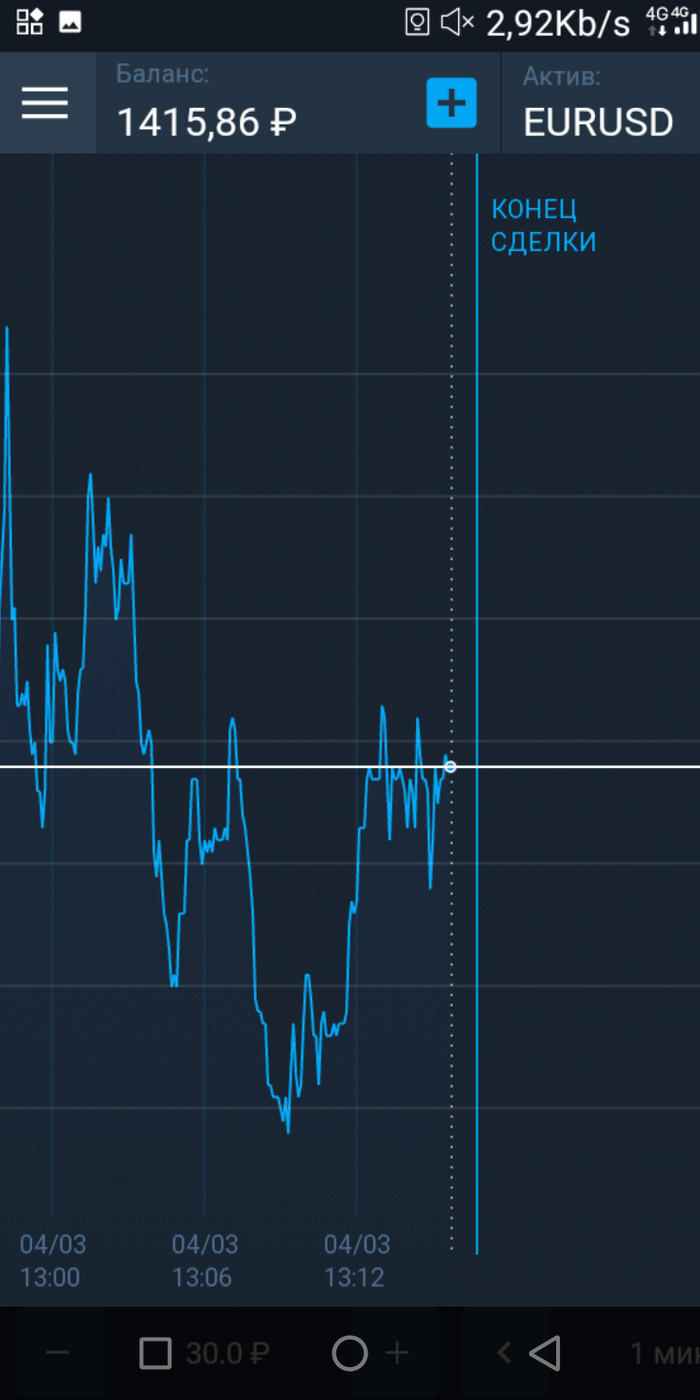 Привет всем ,хочу поделиться своими первыми результатами трейдингом , а точнее бинарными опционами, не форекс. Год назад я начал активно интересоваться спекуляцией, так в шутку зовут друг друга те кто этим занимается, тренеровался на демо счёте, конечно демо счёт поднять легко не спорю, но я уже 4 дня как на реале. Начал 28.02.2019 г с 1000р. За 4 дня торговли заработал больше 40%, это мало скажете вы, и вовсе не означает что если я начну работать с 10 т.р, то за 4 дня заработаю 4 т.р конечно нет, другой риск и другая психология страха потери средств, если 1т.р я могу себе позволить потерять и не дергаюсь за нее, то 10 т.р это уже немного страшно, и это уже грубая ошибка торговать со страхом, но главный этап психологии пройден, и я уже не сливаю депозит, а это очень важно, спасибо всем .