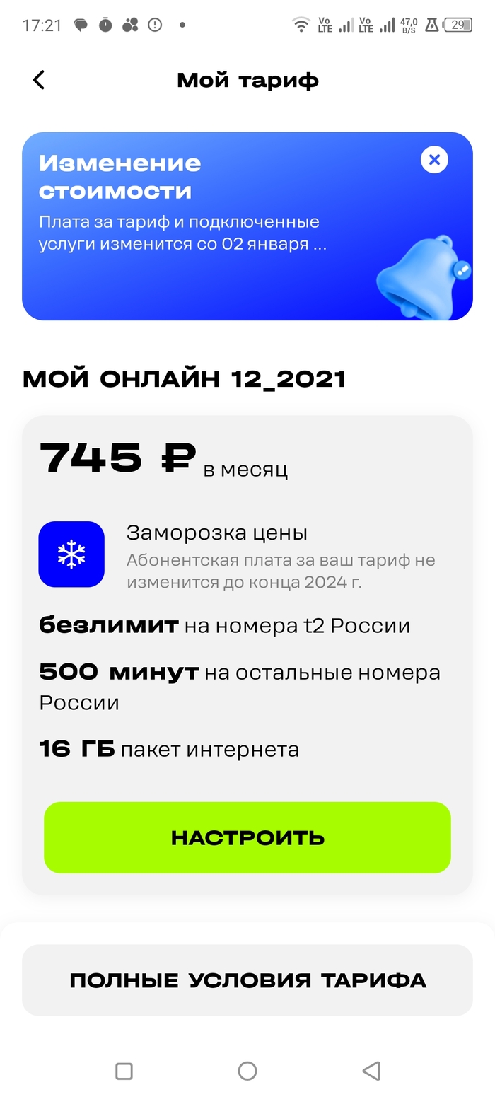 Всем пользователям сюрприз на НГ от ростелеГУАНОкома... T2 избирательно как я понял уведомляет пользователей о повышении тарифов! Я с Теле2 с самого первого месяца работы оператора- втихаря с тарифа 390 подняли в итоге до 645! Ни одного уведомления!!!!!! Ладно проехали ,но теперь из 4 номеров в Теле2 уведомление получила только жена и я зайдя в ЛК увидел,что тариф будет 745!!! Вроде херня 100 рублей,но при таком отношении РосГавнотелекома пошлю их нахер... И уведу 4 номера... Идиоты маркетологи орут во всех билбордах и рекламе- Тарифы заморозили навсегда!!! Врут наглую и похрен им! Смотрите в скриншоты,новый тариф в 745 тоже типа заморожен будет на год-))) Ростелеком у вас там все маркетологи идиоты,то то народ бежит с Т2... Ну и мы пойдем!!!