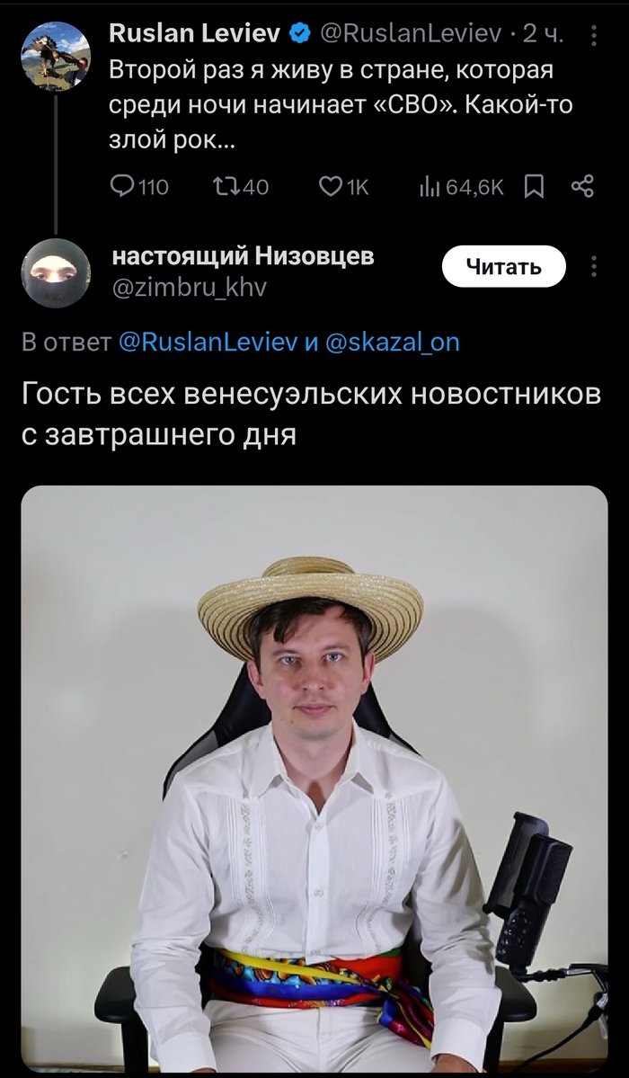 98 Seiron Обстановка 9 дней назад Показать полностью 1 Политика X (Twitter) Руслан Левиев США Спецоперация 40 2 Ещё 0