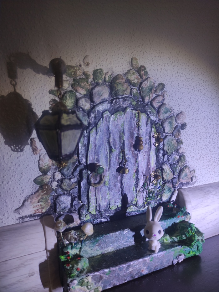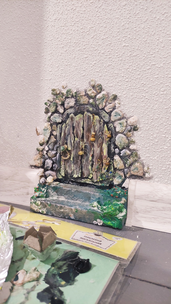 Делаем с мужем ремонт , дошли до плинтусов... И тут мне в голову приходит идея: хочу сделать дверь для мышки. Муж поржал, но место между плинтусами оставил... В итоге получилась вот такая дверь в сказку. 🌌От идеи до выполнения прошли сутки🙈 Лестница убирается ( для удобства уборки). Изготовлено из пивного картона и самозавердевающей массы. Покрашено акриловыми и люминесцентными красками. Высота плинтуса 52 мм. Дверь не открывается, камушки, мох и фонарь светятся в темноте. Могу сделать фото в темноте 😁