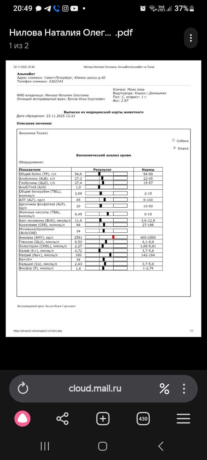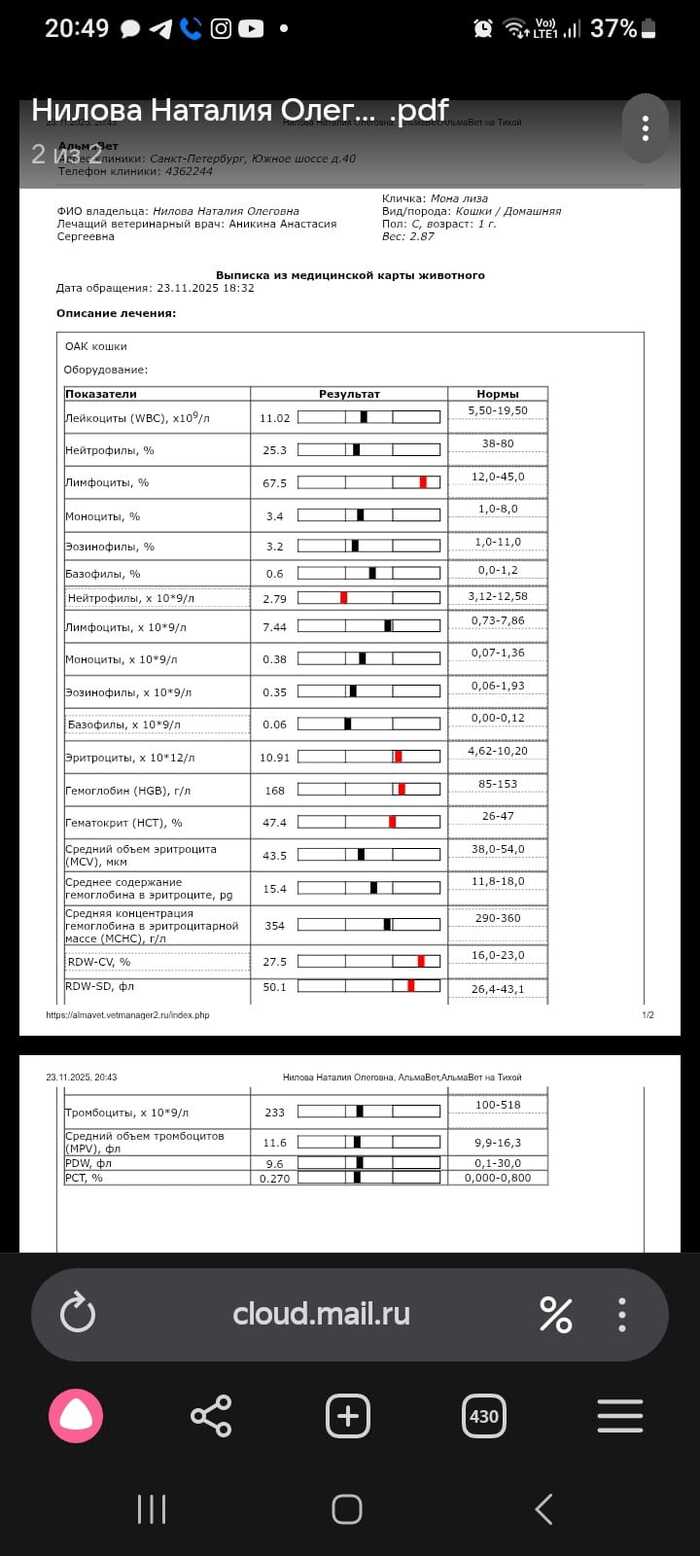 Позавчера были в клинике Альмавет : температура нормальная, признаков инфекции нет.