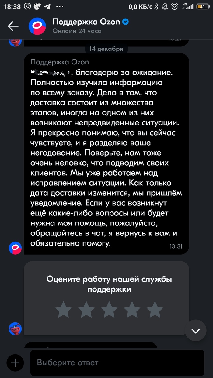 12 декабря решила всё же обратиться в чатик именно к человеку. Сказали подождать три дня. Прикинула максимальный вариант - 8 число не в счёт, 9 чисто первый день уточнения, 10-11 выходной, 12 второй день уточнения, 13 третий день. Знакомая ещё написала, мол, "Наверное потеряли, а чат поддержки права не имеет напрямую об этом написать". 13 числа ближе к полуночи написала в ТП - сказали ждать 5 дней. Почесала в голове, да спать пошла.