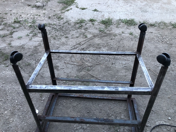 Откопал стол, который варил еще дед, лет 30 назад. Зачистил, пока приварил колеса от сломанного стула 😃
