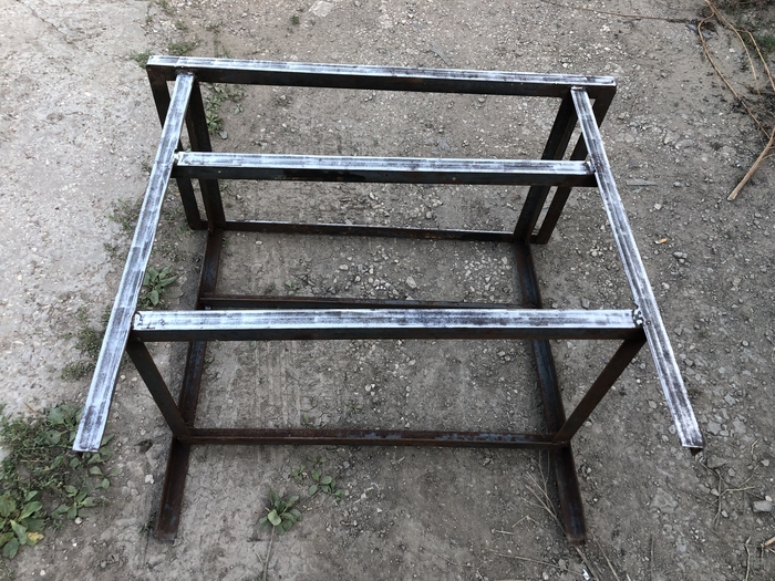 На неделе надо решить как правильно организовать рабочую поверхность. Пока есть идея приварить под 90 уголки 40х40 с шагом, которые так же в наличии в закромах.