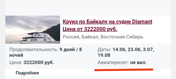 6 SenatorI Цена отдыха 3 года назад Решил посмотреть, почем нынче рыболовный туризм. Наткнулся на сайте вот на такое предложение. Да еще и без авиаперелета. На такой отдых ипотеку брать нужно. [моё] Объявление Яхта Круиз Высокие цены Ещё 0